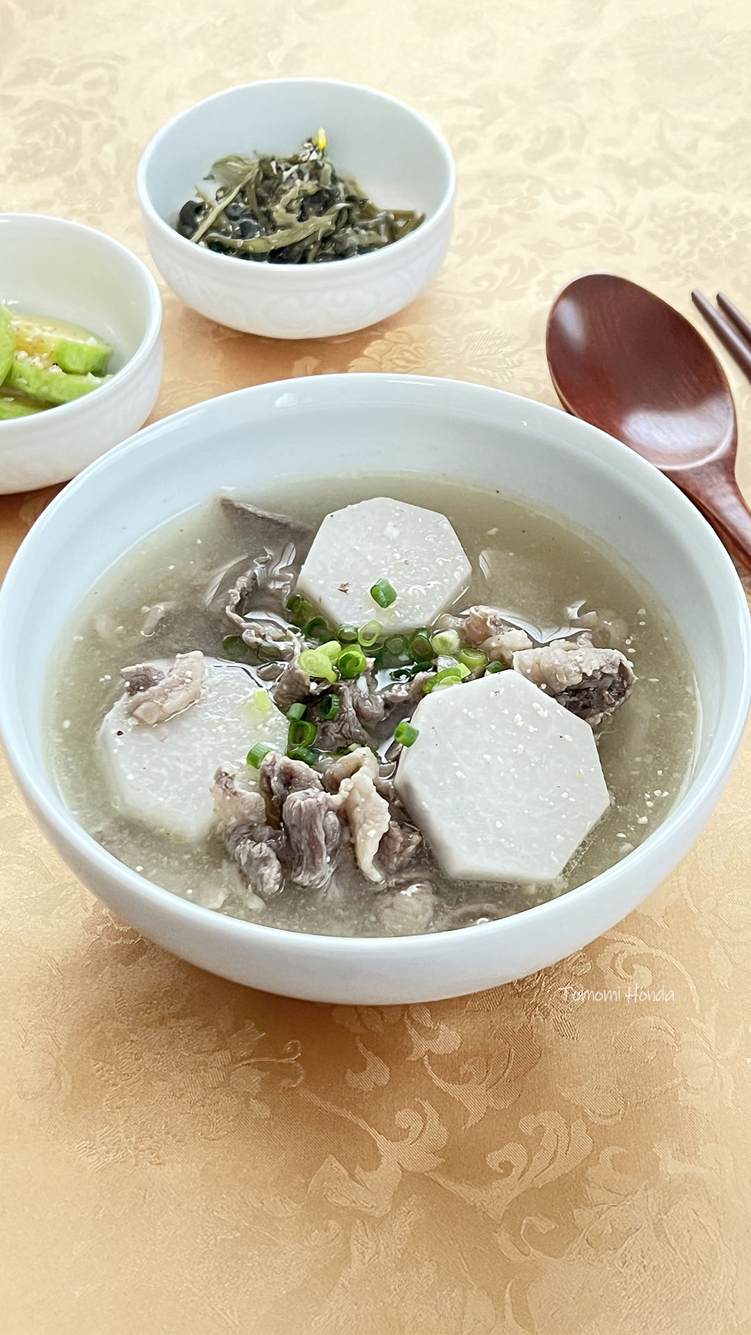 やわらかく煮込んだサトイモと牛肉に、香ばしいエゴマ粉の風味が溶け込み、まろやかで深みのある味わいに。