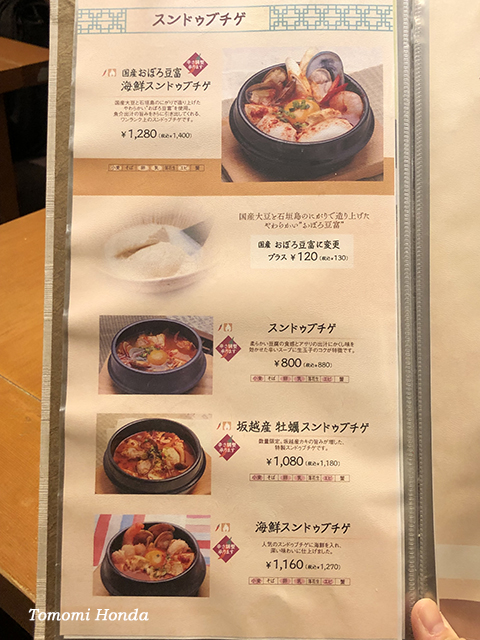 ちょっと前からグランドメニューが変わり、スンドゥブチゲのランナップが充実。ずーっとあったアサリ入りのスンドゥブチゲに加えて、坂越産牡蠣スンドゥブチゲ、海鮮スンドゥブチゲも。