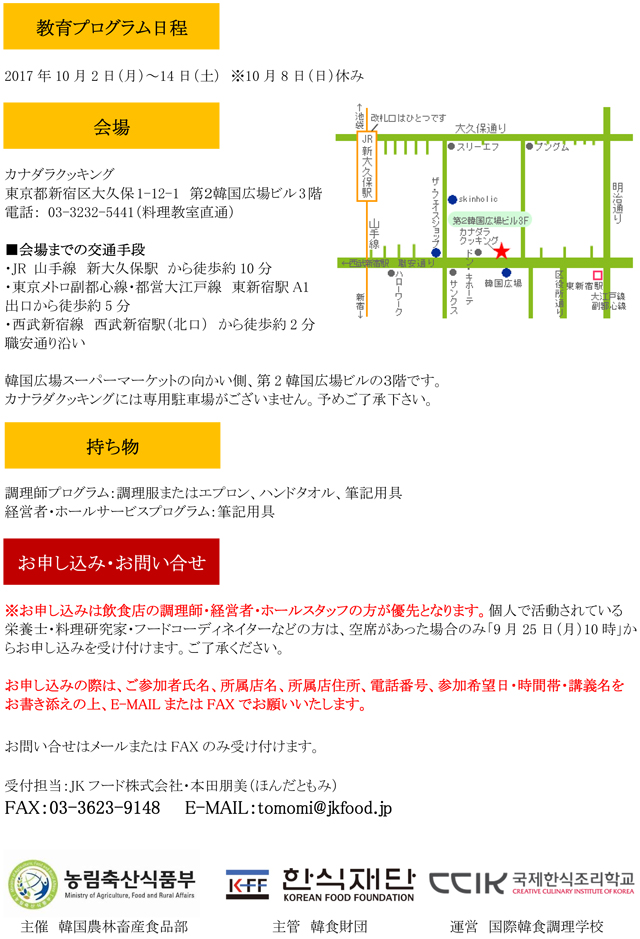 → 10月2日(月)~14日(土)韓食レストランスタッフための教育プログラム