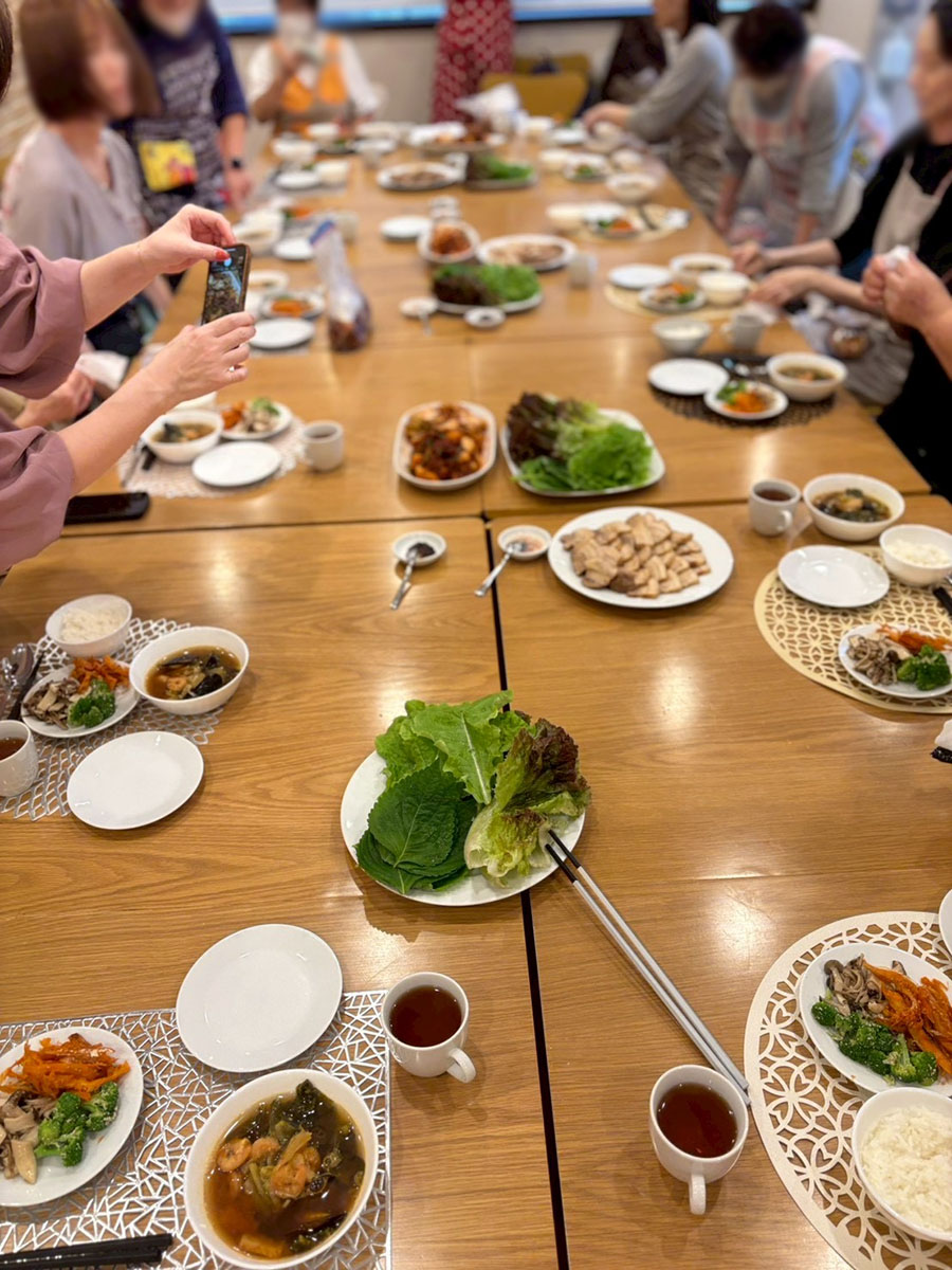 キムチ作りのあとは、お楽しみの食事タイム。