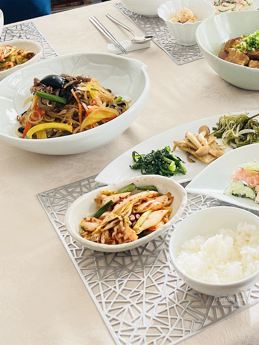 今回のパンチャンレッスン開催のきっかけとなった一品。ワークショップでサイドメニューとしてお出しすることが多いのですが、「春雨がくっつかない方法を知りたい」というリクエストをいただき、そのあたりのコツを詳しくお伝えしました。お店のチャプチェと比較すると、違いがよく分かると思います。