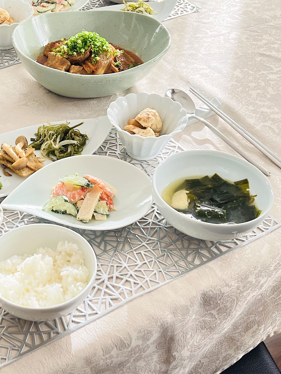 当初はメセンイ(カプサアオノリ)のスープを予定していましたが、新大久保のマートで購入していたのは韓国産のワカメ……。レッスン中に気づき、急きょワカメスープに変更しました。