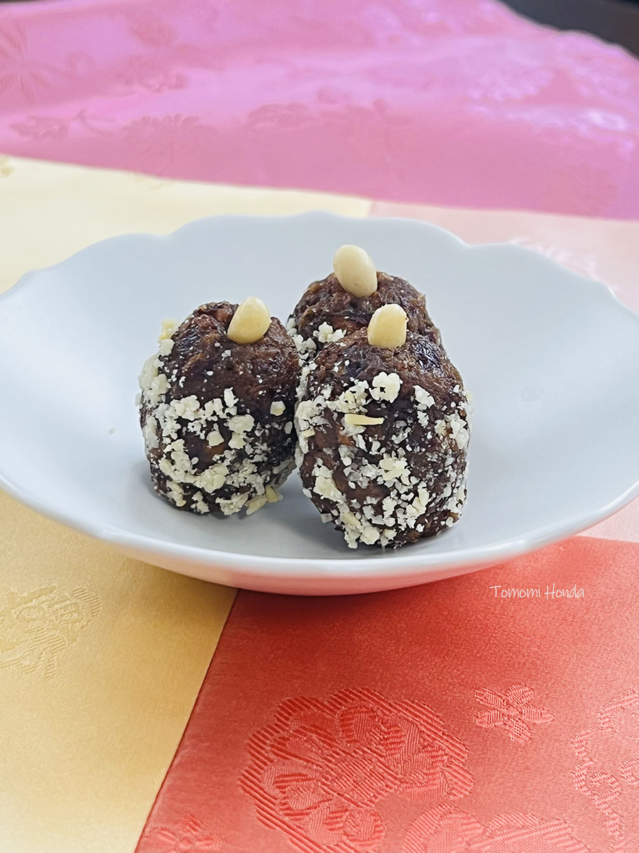 チョランは、蒸したナツメを細かく刻んでペースト状にしてから、再びナツメの形に整えるという、ちょっと手のかかるお菓子です!そのまま食べるナツメとは違い、甘みとコクがぐっと増して、ひとつ食べただけでも満足感のある味わいに。